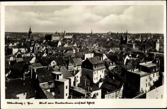 Ak Altenburg in Thüringen, Blick vom Nikolaiturm auf die Stadt, Schloss