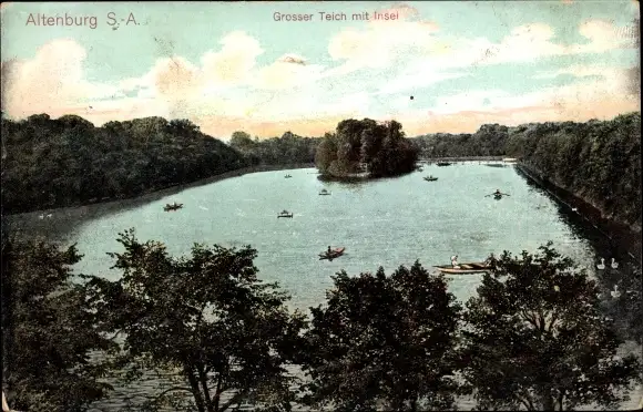 Ak Altenburg in Thüringen, Großer Teich mit Insel