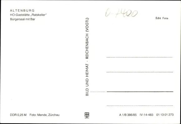 Ak Altenburg in Thüringen, HO Gaststätte Ratskeller, Bürgersaal mit Bar