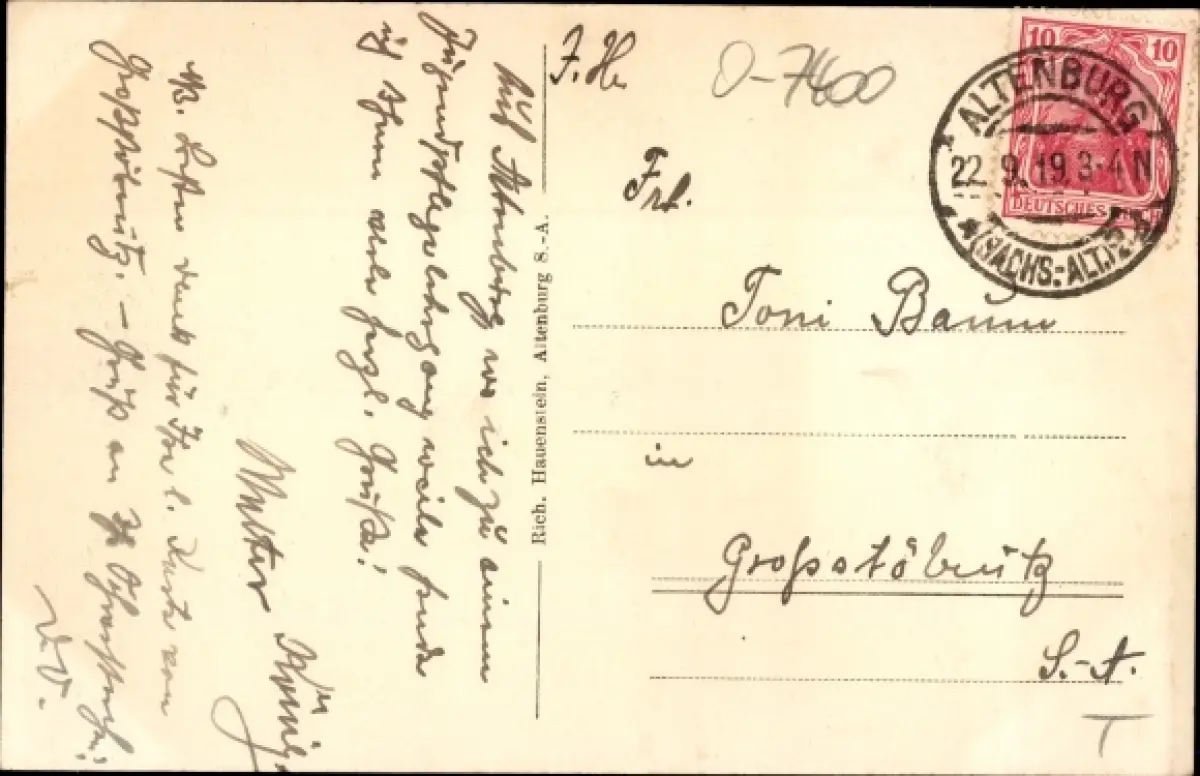 Zustand, siehe Scan, gelaufen, 1919 - ca 14 cm X 9 cm