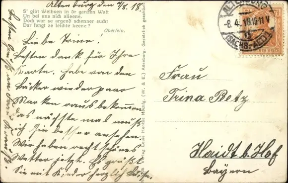 Zustand, siehe Scan, gelaufen, 1918 - ca 14 cm X 9 cm