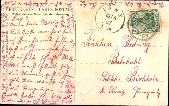 Zustand, siehe Scan, gelaufen, 1907 - ca 9 cm X 14 cm