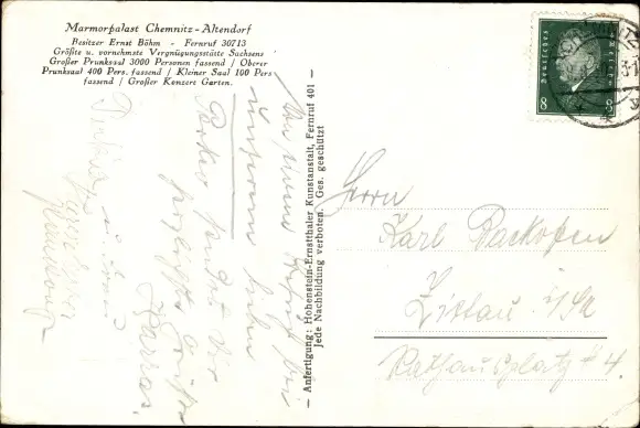 Zustand, siehe Scan, gelaufen, 1930- Inh. Ernst Böhm - ca 15 cm X 10 cm