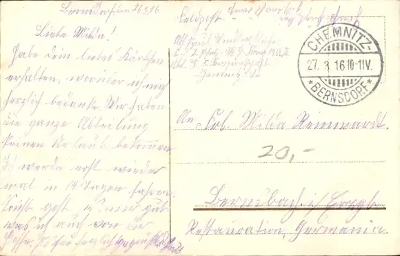 Zustand, siehe Scan, gelaufen, 1916 - ca 14 cm X 9 cm