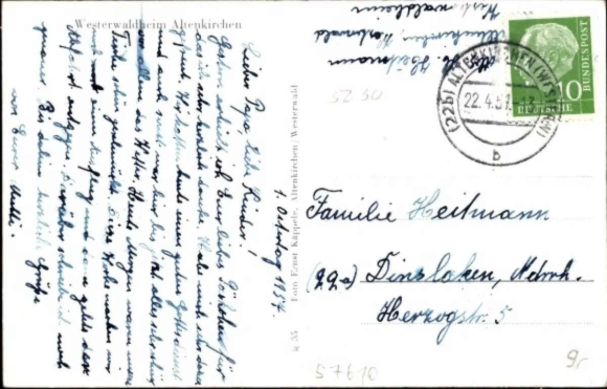 Zustand, siehe Scan, gelaufen, 1957 - ca 14 cm X 9 cm