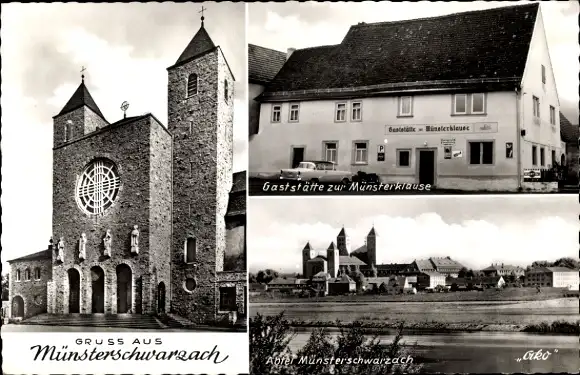 Ak Altenschönbach Prichsenstadt in Unterfranken, Kirche, Gaststätte zur Münsterklause, Abtei