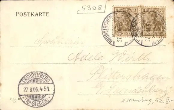 Zustand, siehe Scan, gelaufen, 1906- Inh. Chr. Gaumann - ca 14 cm X 9 cm