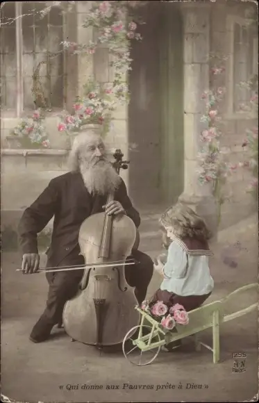 Ak Alter Mann spielt Cello, Kind