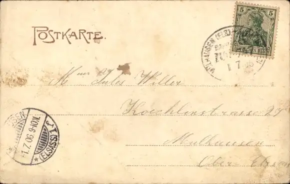 Zustand, siehe Scan, gelaufen, 1906 - ca 14 cm X 9 cm