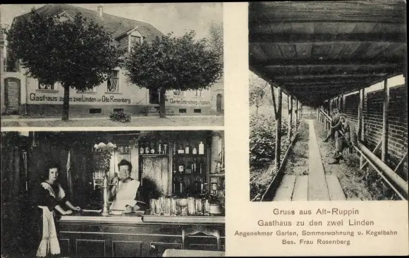 Ak Altruppin Neuruppin in Brandenburg, Gasthaus zu den zwei Linden, Kegelbahn