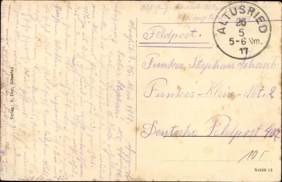 Zustand, siehe Scan, gelaufen, 1917 - ca 14 cm X 9 cm