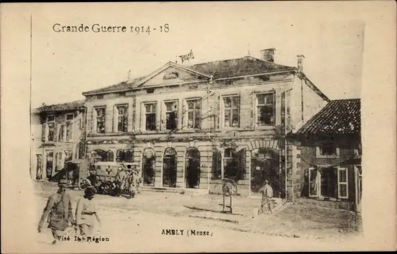 Ak Ambly Meuse, Straßenpartie zu Kriegszeiten, 1914-1918