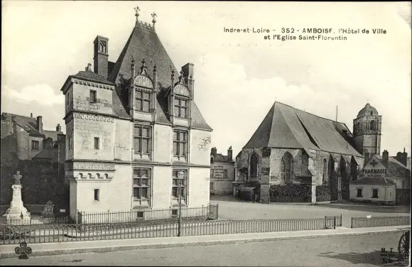 Ak Amboise Indre et Loire, L'Hôtel de Ville, L'Église Florintin