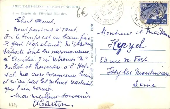 Ak Amelie les Bains Pyrénées Orientales, Hopital Militaire, Entree