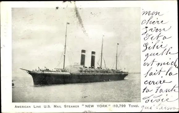 Ak American Line US Mail Steamer New York, Dampfschiff