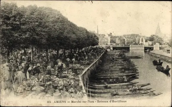 Ak Amiens Somme, Spaziergang auf dem Wasser, Boote von Hortillons
