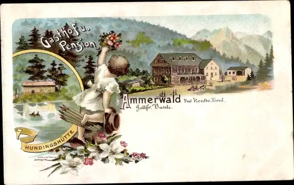 Ak Ammerwald Reutte in Tirol, Gasthof und Pension Hundingshütte