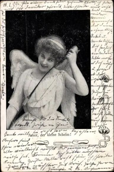 Ak Amor, der kleine Schelm, Engel mit Bogen