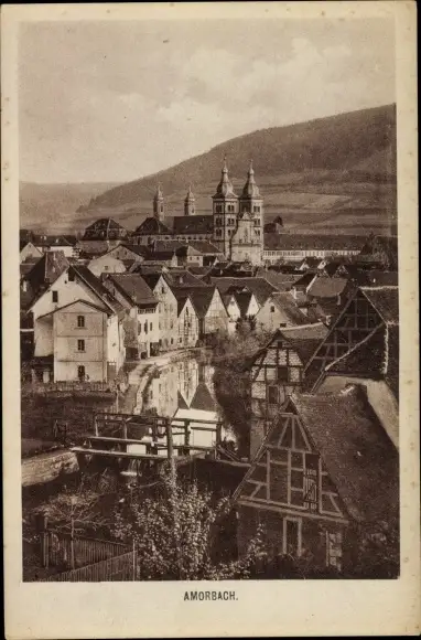 Ak Amorbach im Odenwald Unterfranken, Stadtpanorama, Kirche