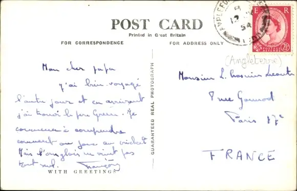 Zustand, siehe Scan, gelaufen, 1954 - ca 14 cm X 9 cm