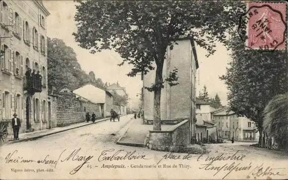 Ak Amplepuis Rhône, Gendarmerie, Rue de Thizy