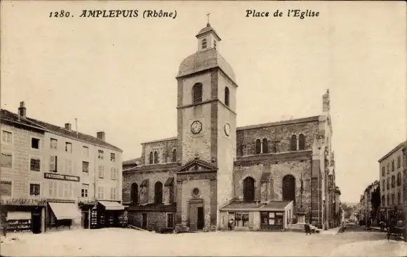 Ak Amplepuis Rhône, Kirche, Kirchplatz, Turmuhr