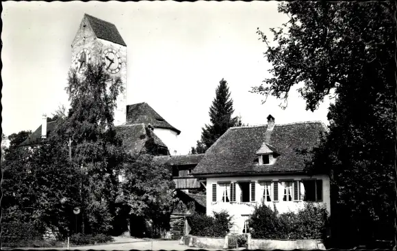 Ak Amsoldingen Kt Bern Schweiz, Teilansicht mit Kirche