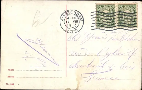 Zustand, siehe Scan, gelaufen, 1913 - ca 14 cm X 9 cm