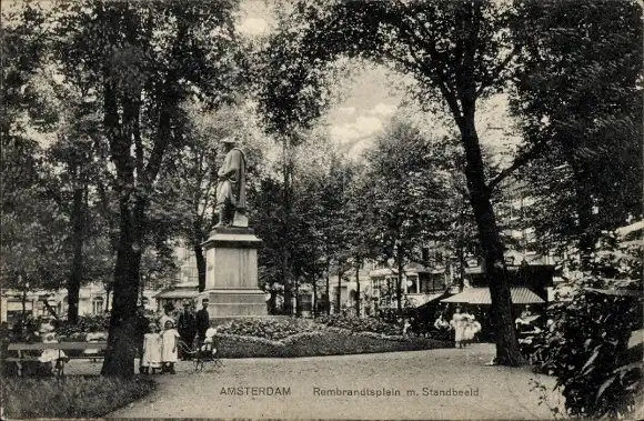 Ak Amsterdam Nordholland Niederlande, Rembrandtplein, Denkmal