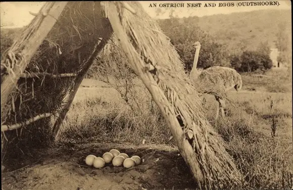 Ak An Ostrich Nest and Eggs, Strauß, Nest, Eier, Vogelnest