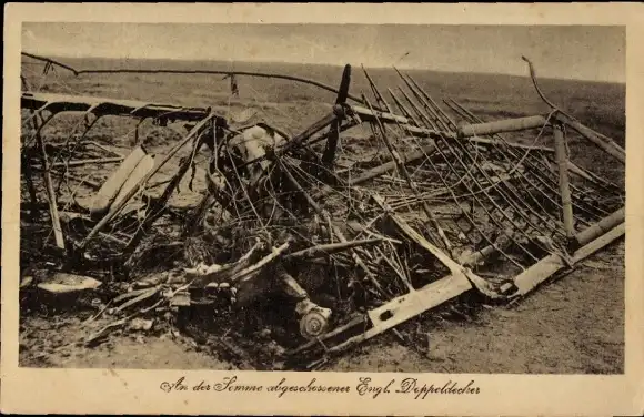 Ak An der Somme abgeschossener englischer Doppeldecker, I WK
