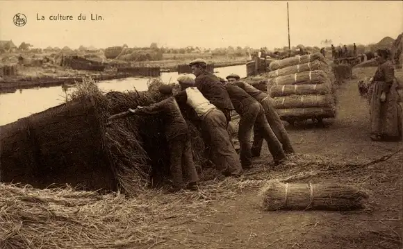 Ak Anbau von Leinen, der beladene Ballon wird ins Wasser geschoben