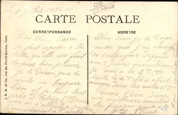 ungelaufen, Rückseite beschrieben, datiert 1916, sehr guter Zustand
