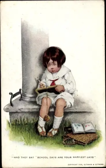 Ak And they say School days are your happiest days, trauriges Kind lernt
