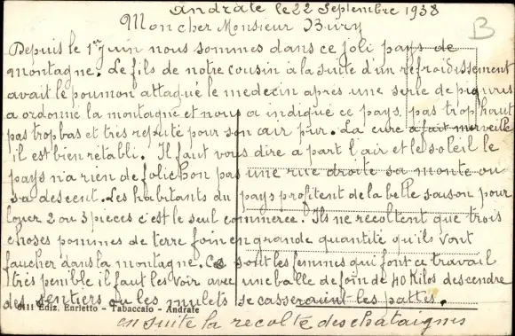 ungelaufen, Rückseite beschrieben, datiert 1938, sehr guter Zustand