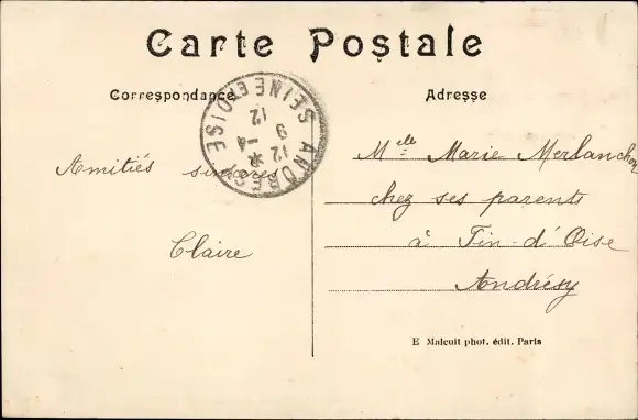 Zustand, siehe Scan, gelaufen, 1912 - ca 14 cm X 9 cm