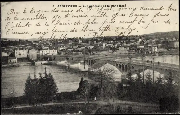 Ak Andrézieux Loire, Vue generale et le Pont Neuf