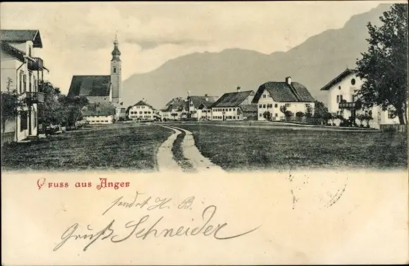 Ak Anger in Oberbayern, Blick auf den Ort, Wohnhäuser, Kirche