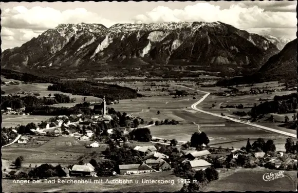 Ak Anger in Oberbayern, Ortsansicht mit Autobahn und Untersberg