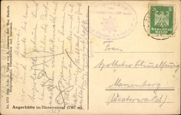 Ak Angerhütte im Hinterreintal, Schutzhütte am Waldrand, Bergwand