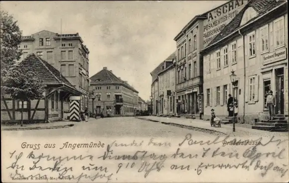 Ak Angermünde in der Uckermark, Brüderstraße, Posamentenhandlung
