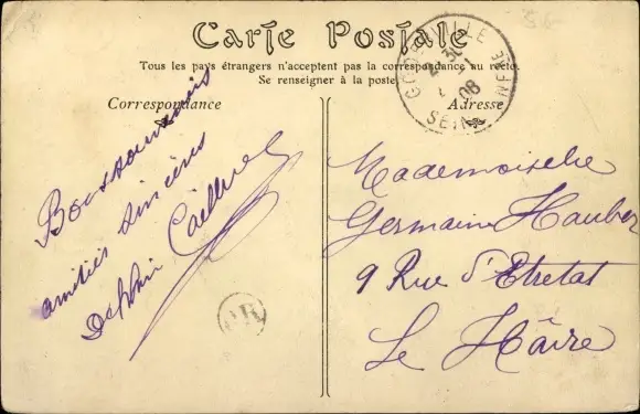 Zustand, siehe Scan, gelaufen, 1908 - ca 14 cm X 9 cm