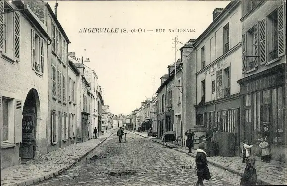 Ak Angerville Essonne, Rue Nationale, Commerces