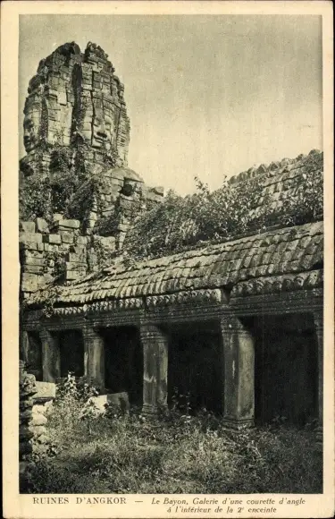 Ak Angkor Wat Kambodscha, Ruines, Le Bayon, Galerie d'une courette d'angle a 2e enceinte