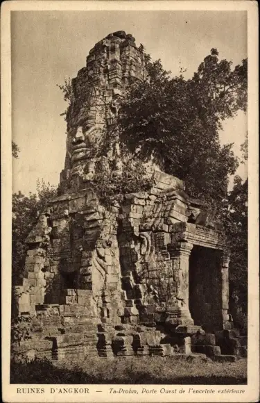 Ak Angkor Wat Kambodscha, Ruines, Ta Prohm, Porte Ouest de l'enceinte exterieure