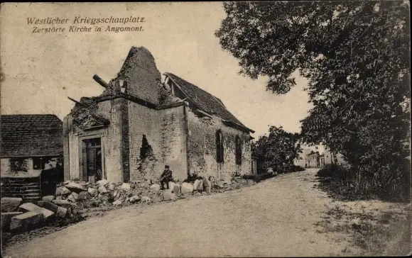 Ak Angomont Lothringen Meurthe et Moselle, zerstörte Kirche, Ruinen, I. WK
