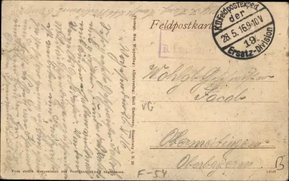 Zustand, siehe Scan, gelaufen, 1916 - ca 14 cm X 9 cm