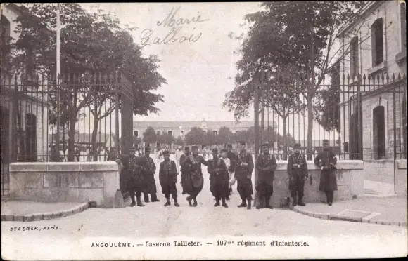 Ak Angoulême Charente, Caserne Tailleter, 107me régiment d'Infanterie