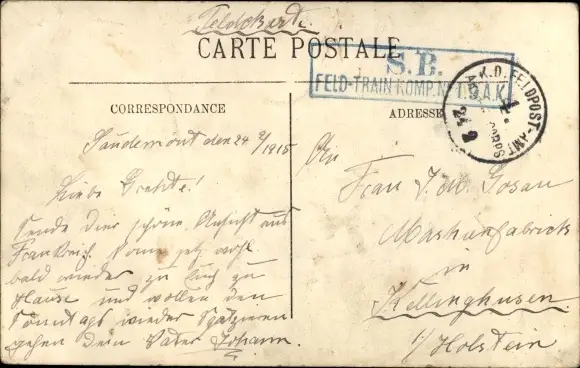 Zustand, siehe Scan, gelaufen, 1915 - ca 14 cm X 9 cm