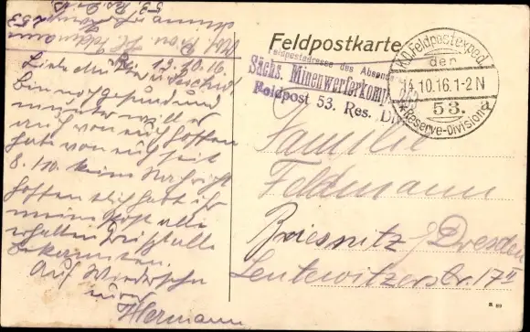Zustand, siehe Scan, gelaufen, 1916 - ca 14 cm X 9 cm